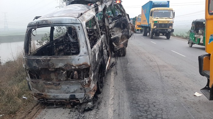 এতে ঘটনাস্থলেই মাইক্রোবাসের ছয় যাত্রী নিহত হন। আহত চারজনকে উদ্ধার করে হাসপাতালে পাঠানো হয়েছে।