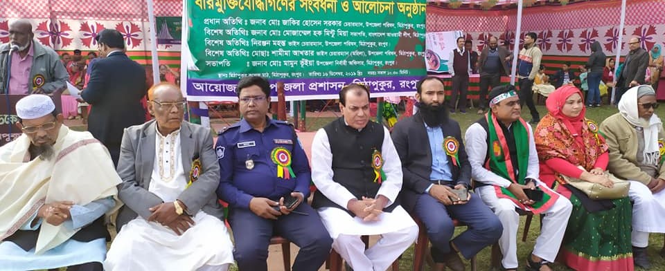 সকাল সাড়ে ১০ টায় সংবর্ধনা অনুষ্ঠানে প্রধান অতিথি ছিলেন উপজেলা পরিষদ চেয়ারম্যান জাকির হোসেন সরকার। উপজেলা নির্বাহী অফিসার মামুন ভুঁইয়ার সভাপতিত্বে বক্তব্য রাখেন আওয়ামী লীগের সভাপতি মোজাম্মেল হক মিন্টু মিয়া, মিঠাপুকুর থানার ওসি জাফর আলী বিশ্বাস, ভাইস চেয়ারম্যান নিরঞ্জন মহন্ত, মহিলা ভাইস চেয়ারম্যান শামিমা আক্তার, মুক্তিযোদ্ধা আইয়ুব আলী শেখ ও আবুল হোসেন।
