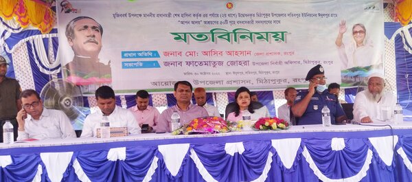উপজেলা নির্বাহী অফিসার ফাতেমাতুজ জোহরার সভাপতিত্বে বক্তব্য রাখেন, উপজেলা সহকারী কমিশরার (ভূমি) রুহুল আমিন, মিঠাপুকুর থানার ভারপ্রাপ্ত কর্মকর্তা (ওসি) মোস্তাাফিজার রহমান, উপকারভোগী আজগার আলী ও হাজরা বেগম।