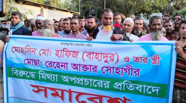 সভায় বক্তরা বলেন, ‘মোহসিন মোঃ হাফিজ (বাহাদুর) ও তাঁর স্ত্রী রেহেনা আক্তার সোহাগী বর্তমানে কোনো মাদক ব্যবসার সাথে জড়িত নন। অথচ একটি কুচক্রী মহল মিথ্যা অপবাদ দিয়ে মাদকের সাথে জড়িত বলে অপপ্রচার করছে। আসন্ন ইউনিয়ন পরিষদ নির্বাচনে মোহসিন মোঃ হাফিজ (বাহাদুর) মেম্বার প্রার্থী হিসেবে নির্বাচন করবেন। তার ব্যাপক জনপ্রিয়তা রয়েছে। তাই, বর্তমান ইউপি সদস্য মোস্তাফিজার রহমান শান্তনুর নেতৃত্বে কিছু চিহ্নিত ব্যক্তি, যাদের বিরুদ্ধে হত্যা মামলা ও গরু চুরি মামলা রয়েছে, তারা বাহাদুরকে দমিয়ে রাখার জন্য উঠেপড়ে লেগেছে।
