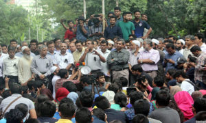 বাংলাদেশ প্রকৌশল বিশ্ববিদ্যালয়ের (বুয়েট) ছাত্র আবরার ফাহাদকে নৃশংসভাবে হত্যাকাণ্ডের দ্রুত বিচার দাবিতে বুধবার জাতীয় প্রেসক্লাবে সামনে প্রকৌশল বিশ্ববিদ্যালয় শিক্ষক সমিতির মানববন্ধন- ফোকাস বাংলা[/caption]